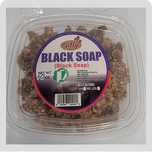 Experience the cleansing power and moisturizing benefits of Niffy Black Soap 10oz. Made with natural ingredients, this soap is a must-have for your skincare routine!